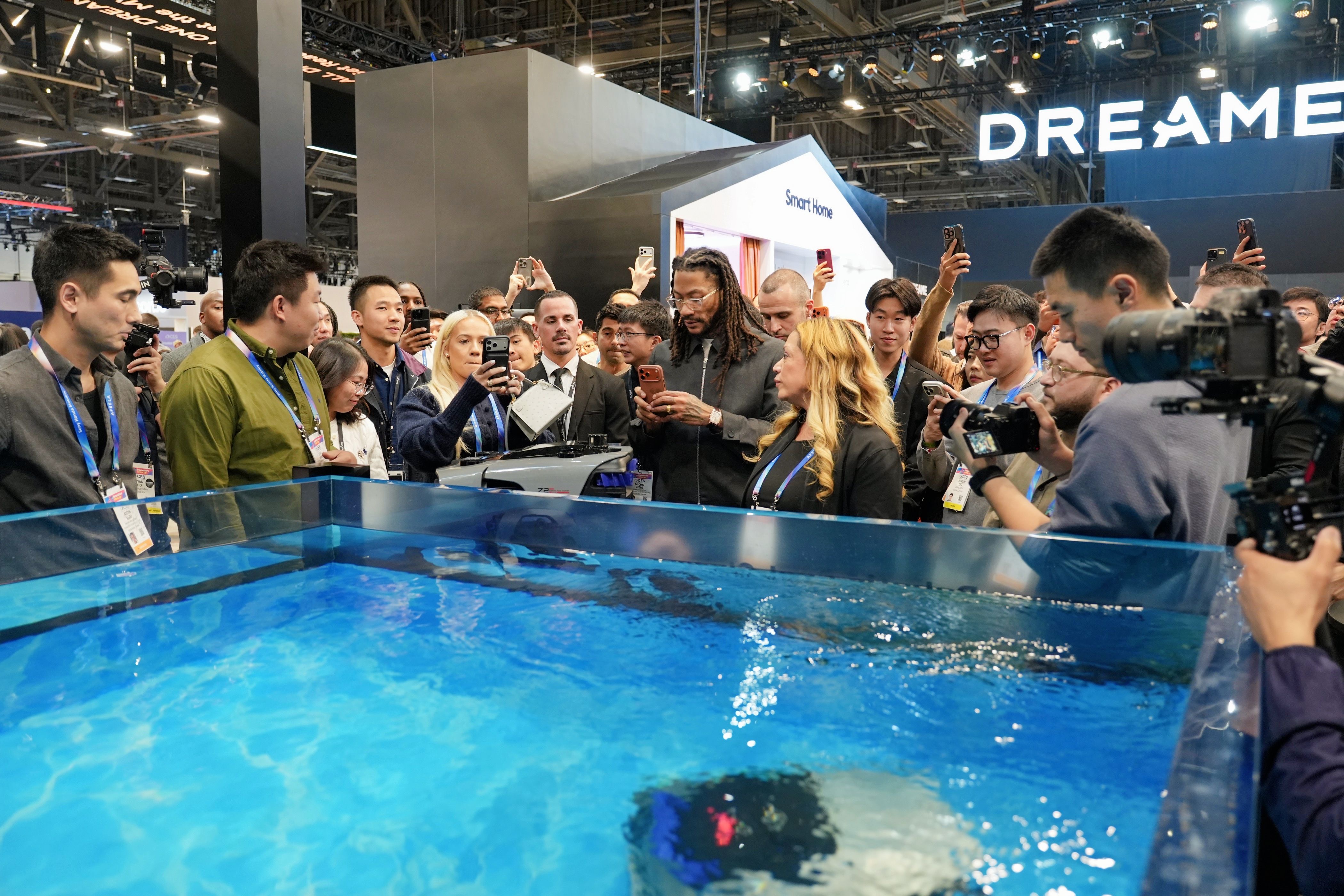 除了量产机型,追觅泳池还在CES 2026上展示了其具身智能概念产品——Z2 Ultra Cyber。该机型首次将高自由度机械臂、AI视觉识别与实时3D建图技术融入消费级泳池清洁场景。