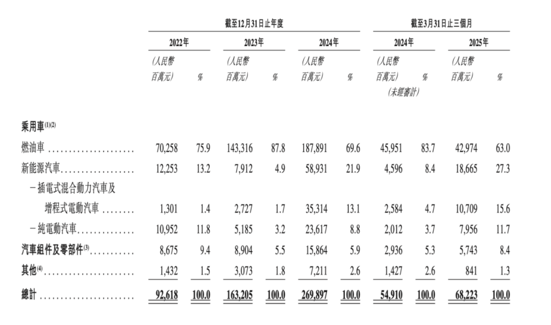 尽管燃油车业务贡献了超七成的收入,为整体运营提供稳定现金流,但“以油养电”的模式也凸显出结构矛盾。2024年,新能源业务收入占比不足两成,至2025年一季度虽提升至27.3%,仍低于行业平均水平。同期,由于新能源车型上量初期对利润存在侵蚀,公司毛利率微降至12.4%。