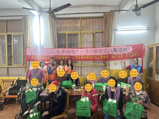 在全运会“全民健康、共享欢乐”精神的感召下,南村镇东片社工服务站积极回应社区需求,于2025年11月13日与15日,携手爱心企业、志愿团队及梅山村、陈边村委,共同为14户残疾人家庭打造了一场温馨难忘的“共庆生辰创赢策略,家伴暖情”季度生日会。本次活动以生日庆典为纽带,不仅传递了社会的深切关怀,更是一次构建“社会支持+邻里互助”网络的生动实践,在初冬时节为特殊家庭送上了直抵人心的温暖。活动得到广州晶亮眼科医院、南爱之翼志愿团队及梅山村、陈边村委的大力支持。